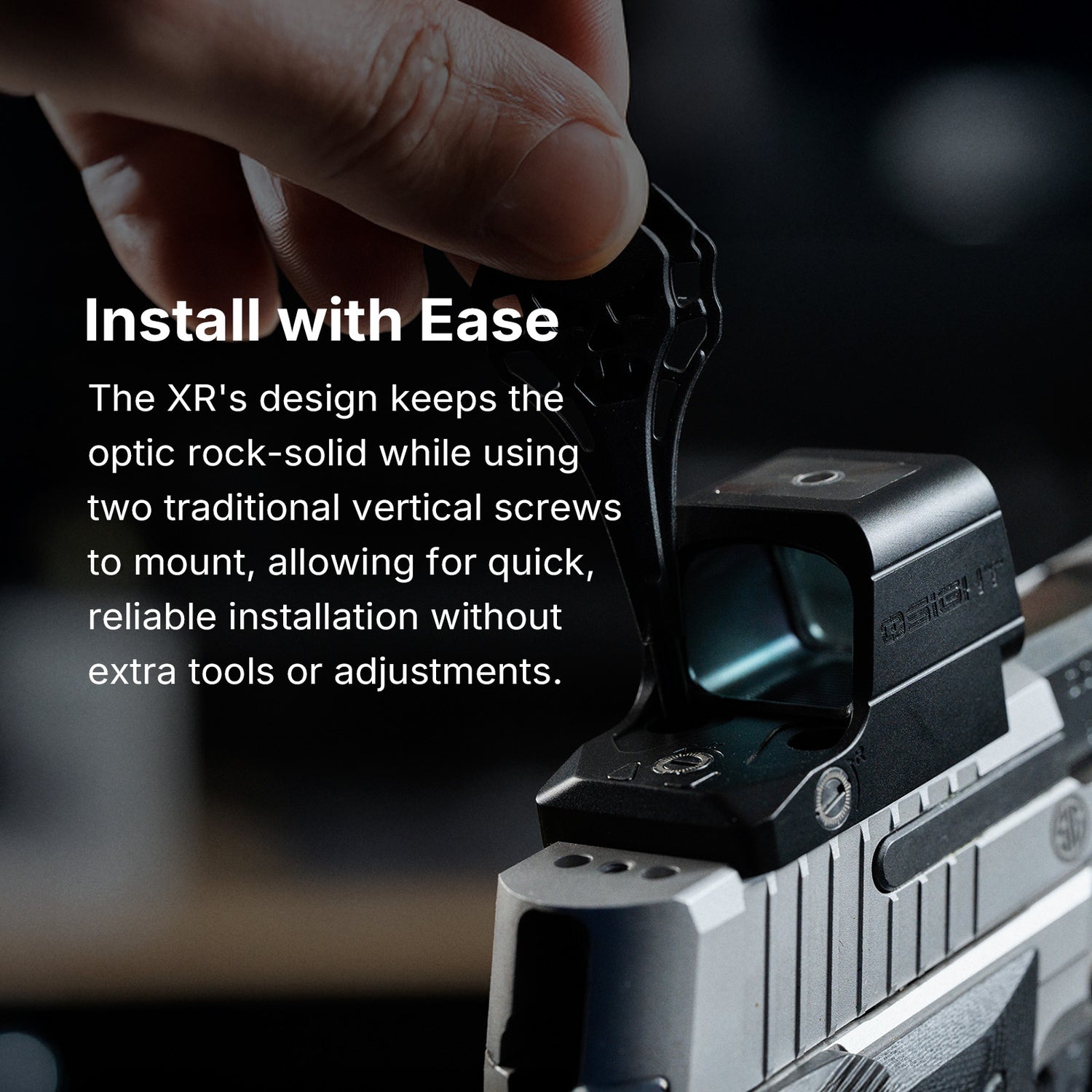Osight XR este construit pe footprint RMR standard din industrie, ceea ce îl face ușor de montat pe multe pistoale și sisteme de montare deja existente pe piață. Deoarece este o optică cu emițător închis, LED-ul este protejat în interiorul carcasei, ceea ce ajută la prevenirea blocării punctului de către ploaie, murdărie sau resturi.